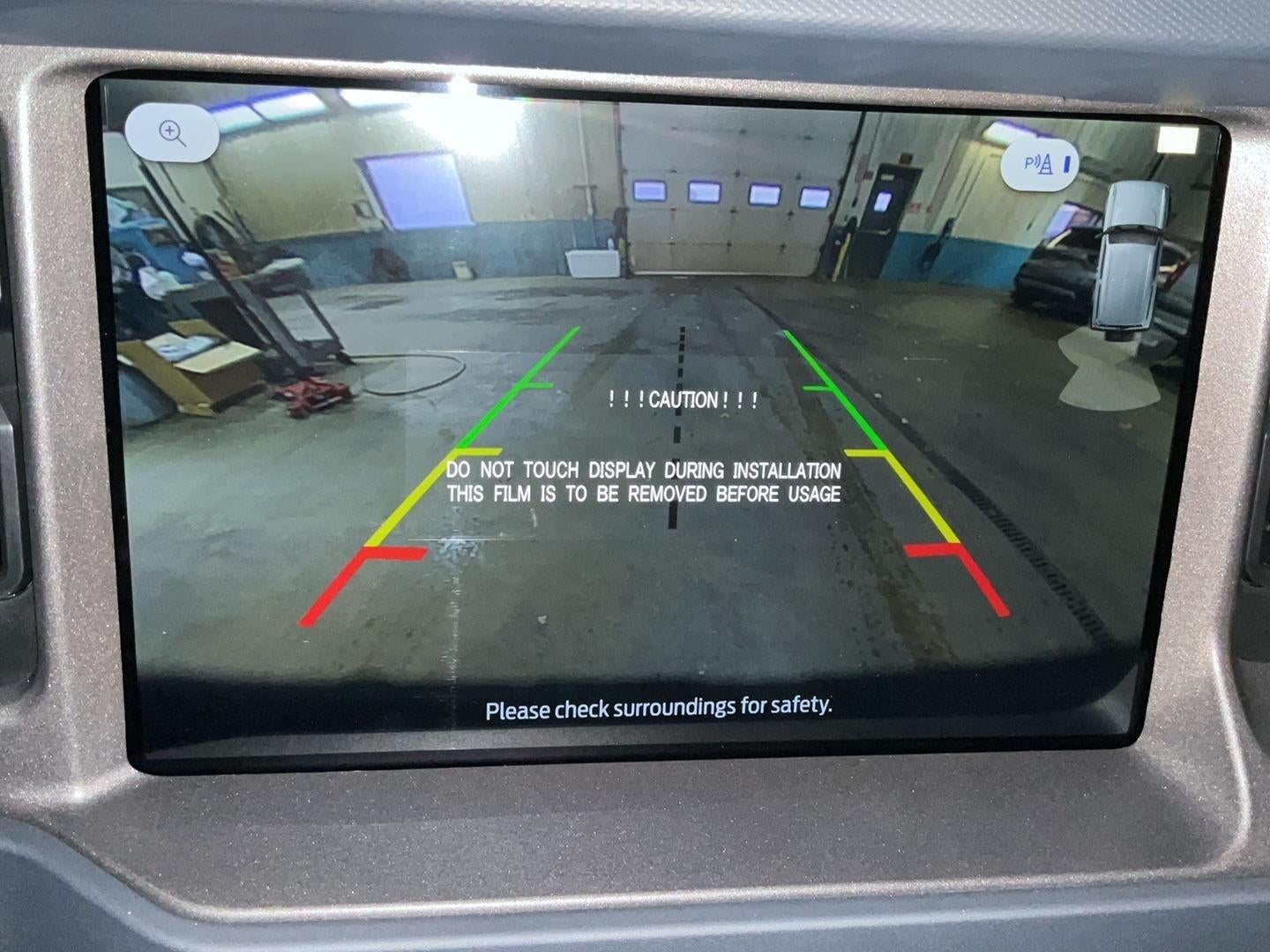 - The vehicle is equipped with a camera that displays an image of the area behind the vehicle on an interior display.